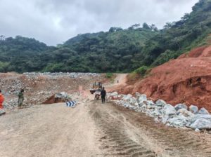 Pendant ce temps, les travaux de reconstruction de la section principale de la falaise se poursuivent dans des conditions climatiques difficiles. Ils portent entre autres sur l’assemblage des éléments préfabriqués du dalot à deux cellules, l’édification d’un remblai de 24 mètres de hauteur, la mise en place des couches de chaussée et l’installation des équipements de sécurité. Le montant global des travaux s’élève à 3,033 milliards de FCFA TTC, tandis que la maîtrise d’œuvre confiée à ECTA BTP est évaluée à 185 millions de FCFA TTC.